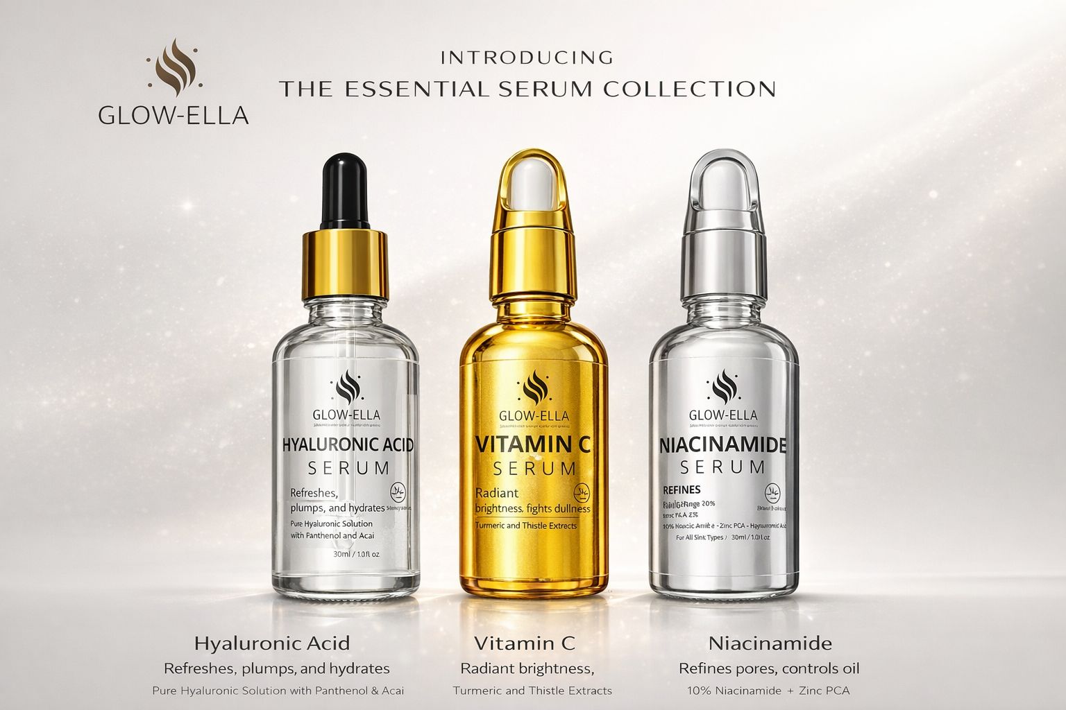 Our collection includes Niacinamide 20% to control oil and refine pores, Vitamin C to brighten and boost glow, and Hyaluronic Acid 5% to deeply hydrate and plump the skin. Each serum is carefully formulated to target specific concerns, helping you achieve balanced, clear, and refreshed skin.